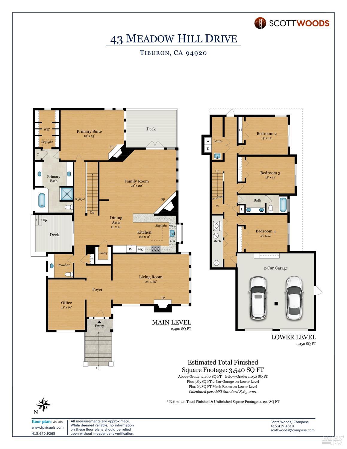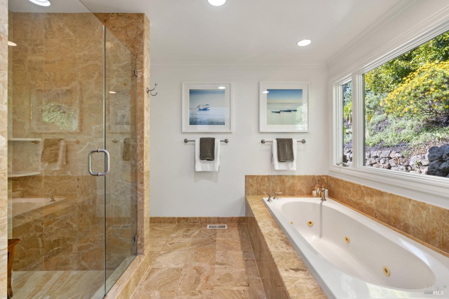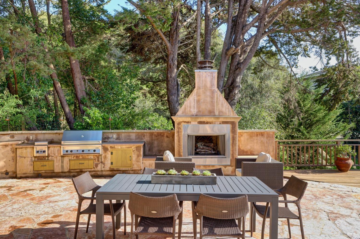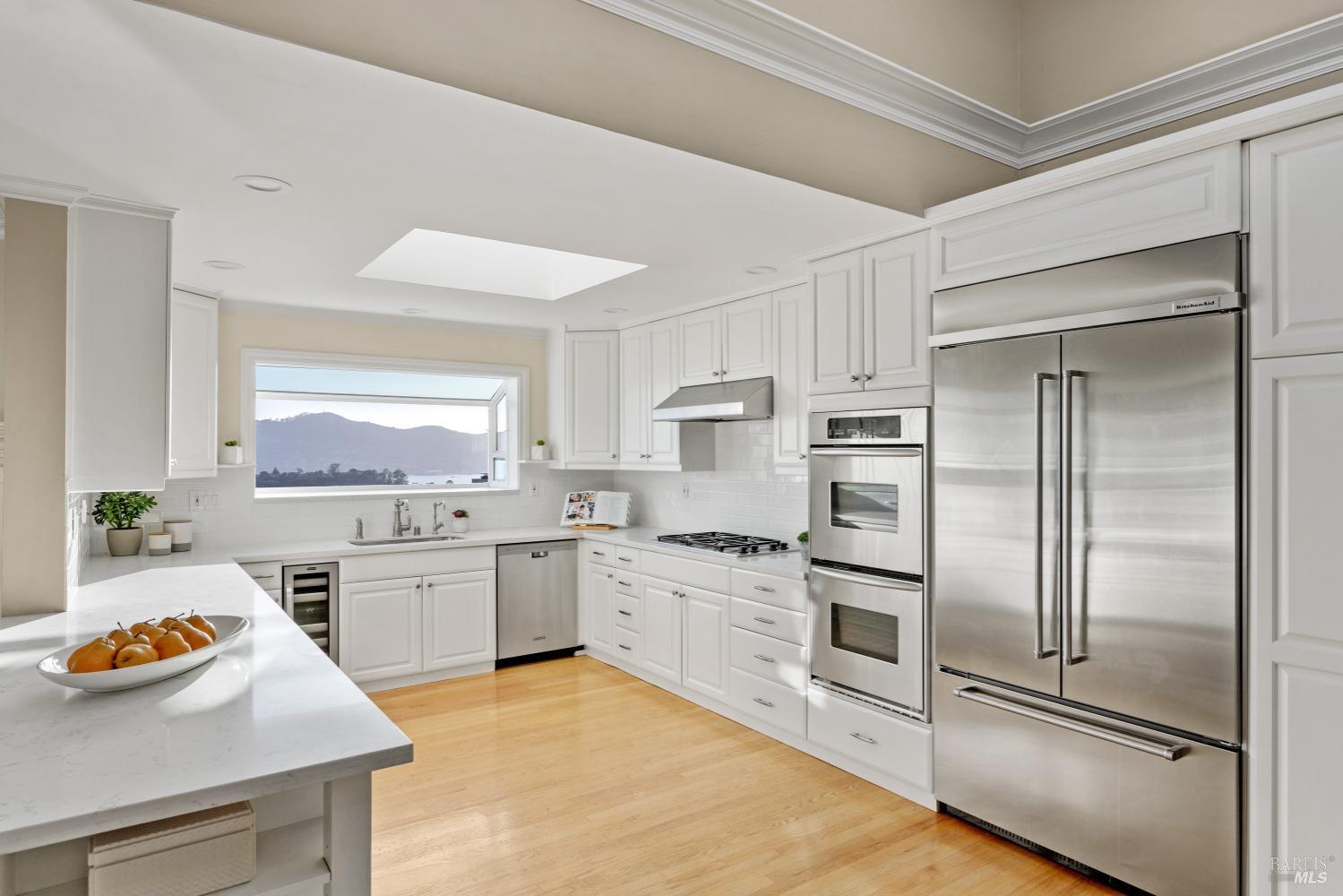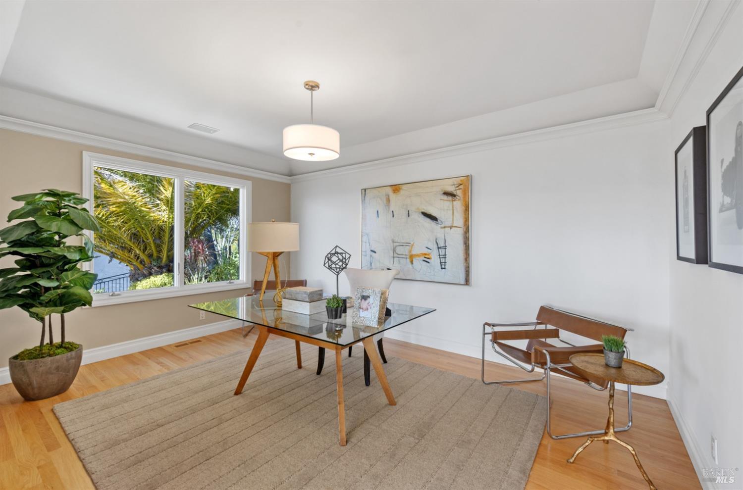 Nestled in one of Tiburon's best neighborhoods, this exquisite 4-bedroom, 2.5-bath contemporary residence offers the perfect blend of luxury, comfort, and natural beauty. Enjoy sweeping panoramic views of Richardson Bay Belvedere Island and Lagoon, and the iconic Golden Gate Bridge from this sanctuary. Ideal for both sophisticated living and entertaining, the main level offers a functional floorplan that flows from the formal living room and office to the spacious kitchen, dining/family combo room. Sliding doors open from this space to an entertaining deck, great for al fresco dining and relaxation, as you take in the inspiring vistas. Expansive windows frame the stunning south-facing views and invite abundant natural light, creating a relaxing atmosphere. The kitchen is well appointed and spacious, featuring high-end appliances, sleek finishes, and a great space for both cooking and entertaining. The primary suite offers a private retreat w/ picturesque views, a spacious spa-like en-suite bathroom with dual vanities, a soaking tub, a separate shower and a roomy walk-in closet. On the lower level, you'll find three generous bedrooms and a shared bathroom. Amazing pool/spa terrace w/outdoor kitchen BBQ and flat, grassy yard and orchard. Large 2 Car garage and driveway parking.
